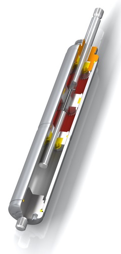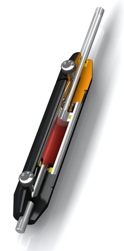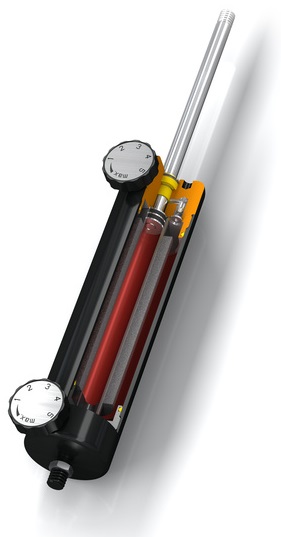 A hydraulic damper consists of a sealed cylinder filled with oil, a piston with adjustable throttling, a piston rod, and high-performance seals. When the piston rod moves, the oil is forced through the internal throttling system in the piston, creating a braking effect. On models with external adjustability, damping can be fine-tuned simply by rotating the piston rod in its end position – either symmetrically for both directions or individually for compression and extension. This enables precise control over speed, synchronization, and motion damping.
