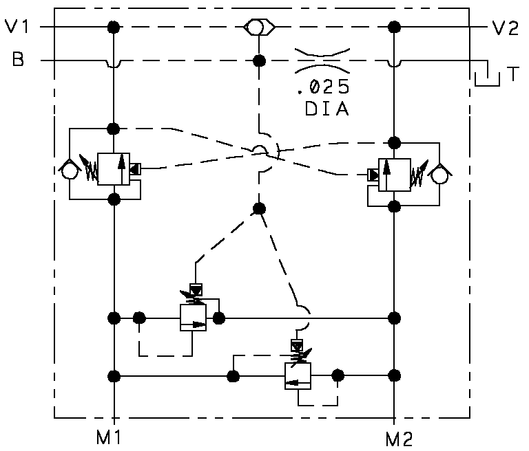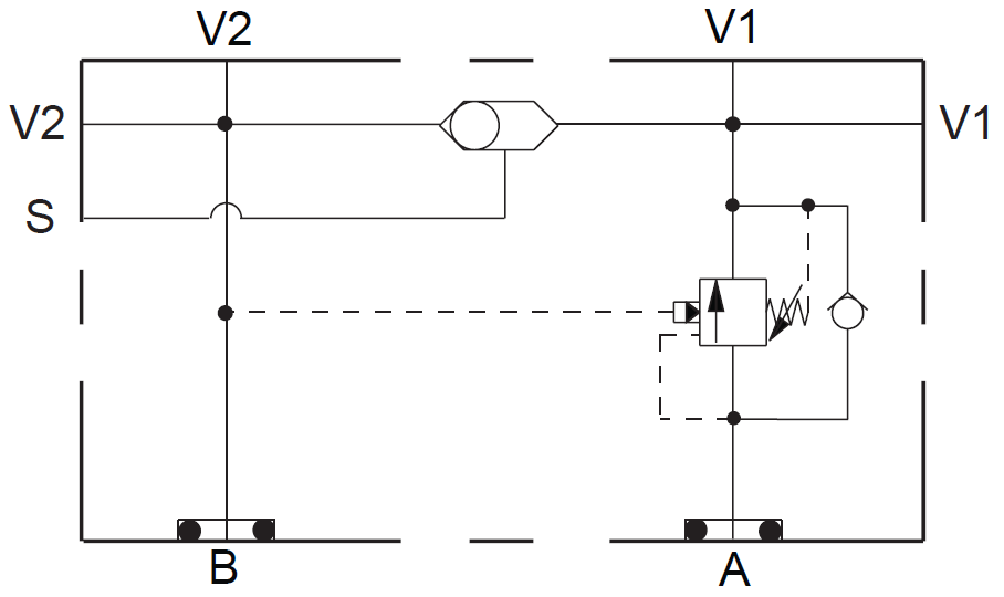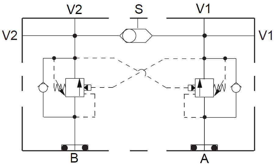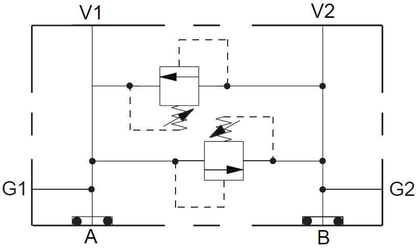 Cross-port relief A to B and B to A, anti-cav checks.
