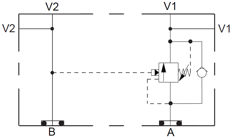 Flowcontrol A to B or B to A, bleed-off.