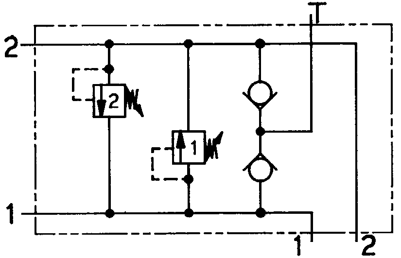 Cross-port relief A to B and B to A one doublecartridge in sandwich.