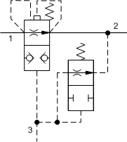 3 ports, bypass orifice, free flow side to nose, port 3 blocked