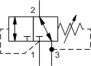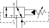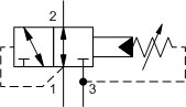 3 ports, port 1 to 2 open, port 3 blocked, pilot operated, 3-way