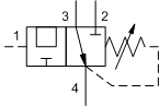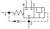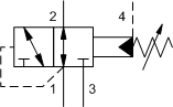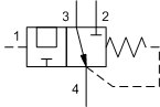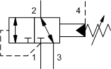 4 ports, port 1 to 2 open, port 3 blocked, pilot operated, 3-way