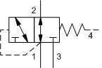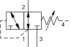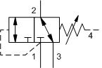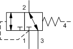 4 ports, port 3 to 4 open, port 2 blocked, direct acting, 3-way