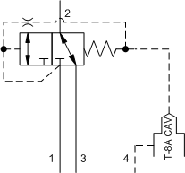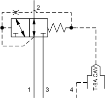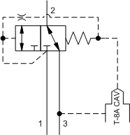 4 ports, port 2 to 3 open, port 1 blocked, integral T-8A control cavity, 3-way