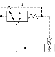 3 ports, port 2 to 3 open, port 1 blocked, integral T-8A control cavity, 3-way