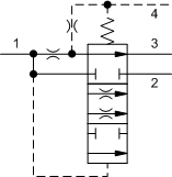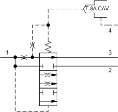 4 ports, fixed orifice, bypass/restricted, with integral pilot control cavity