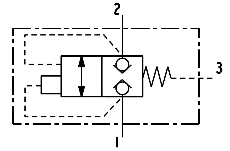 Vent-to-open, spring biased closed, with pilot source from port 2, unbalanced poppet