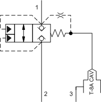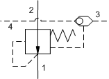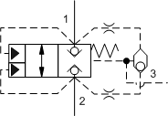 Vent-to-open, spring biased closed, with pilot source from port 1, unbalanced poppet