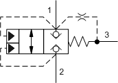 Vent-to-open, spring biased closed, with pilot source from port 1 or 2, unbalanced poppet