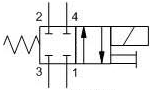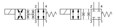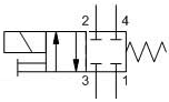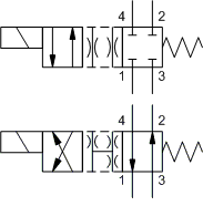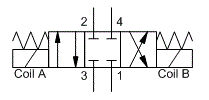 A 4-way solenoid directional valve has four ports and either two or three positions. It is commonly used to control double-acting cylinders where the flow can be directed in both directions, and the valve may have a neutral position to stop or allow the flow to circulate. The three positions can, for example, be: one position to extend the cylinder, one position to retract it, and a neutral position where both ports are either closed or connected to the tank to hold the load in position or allow free flow.