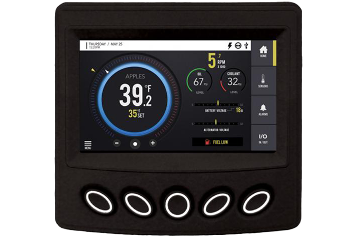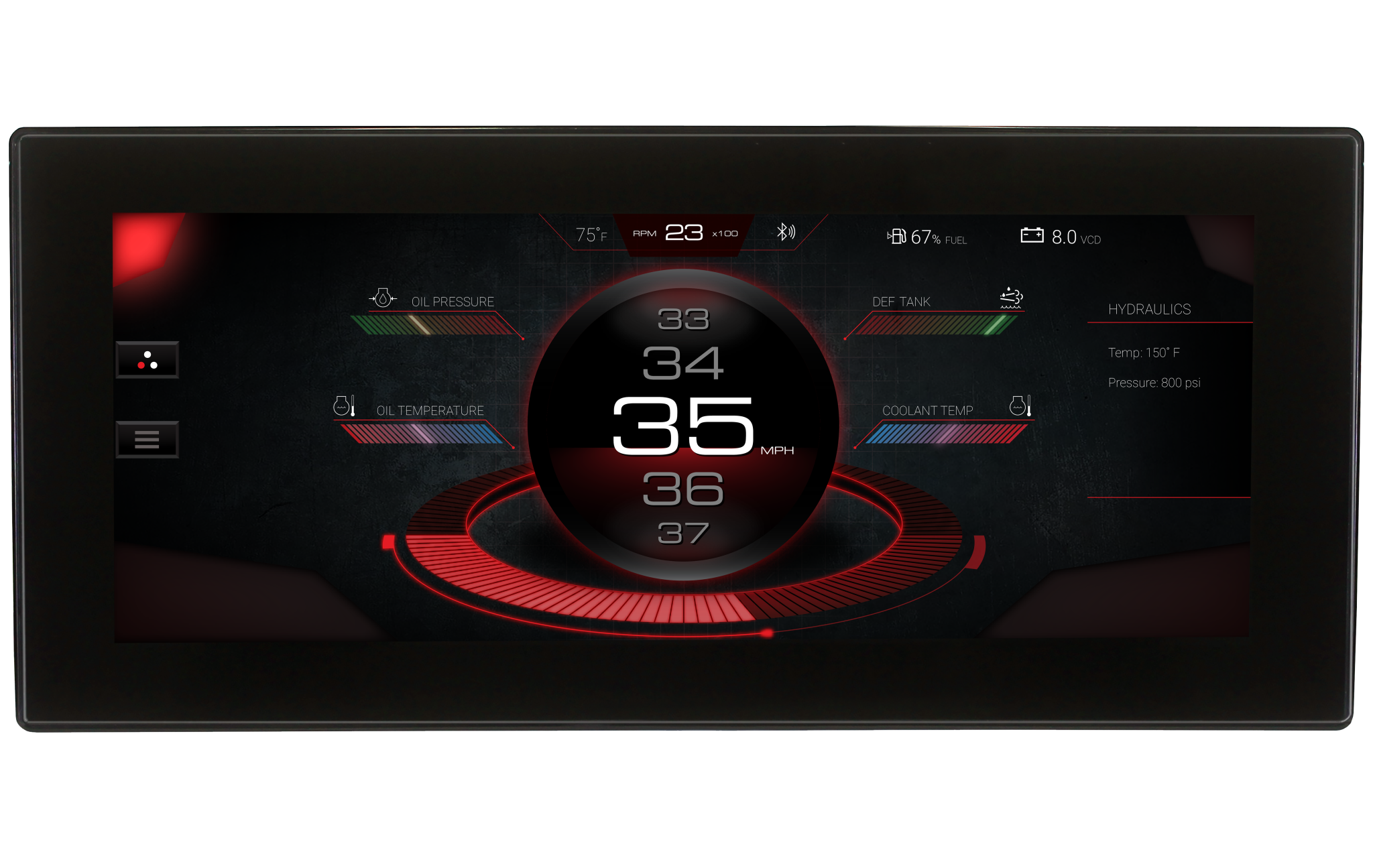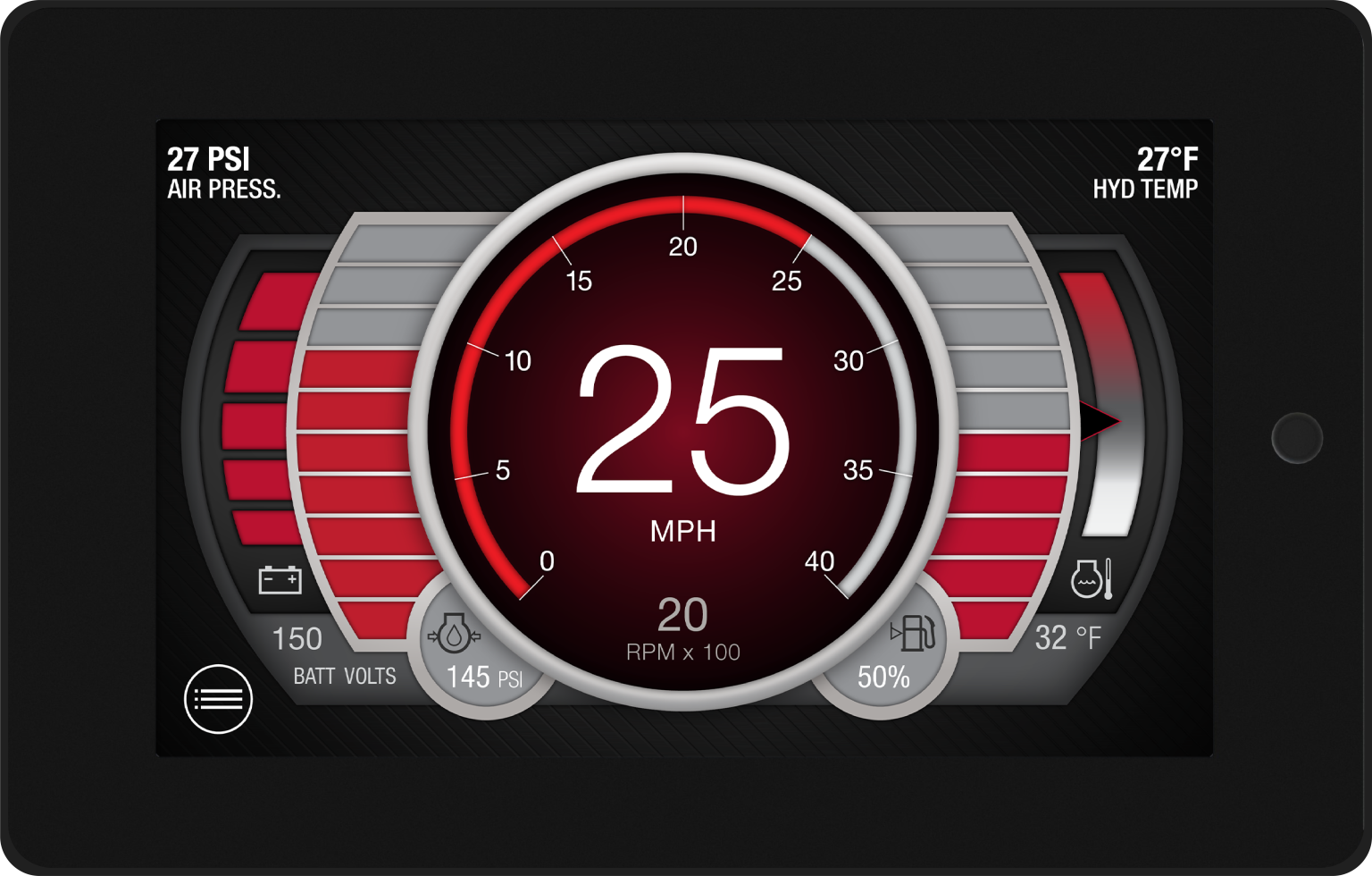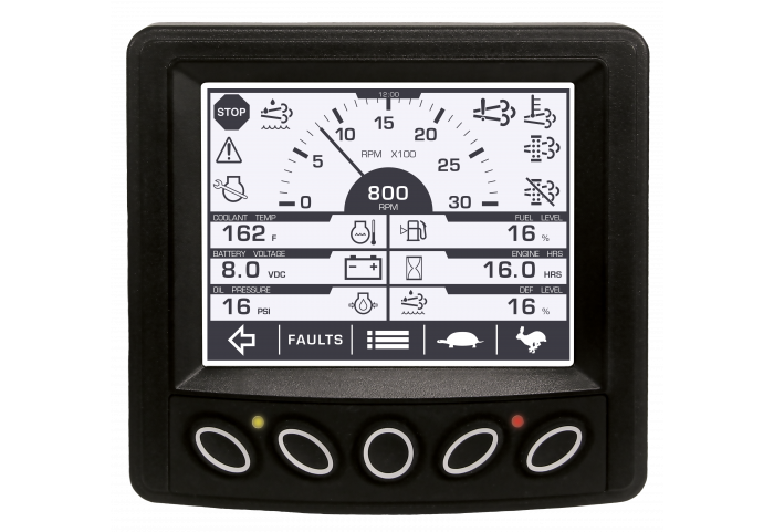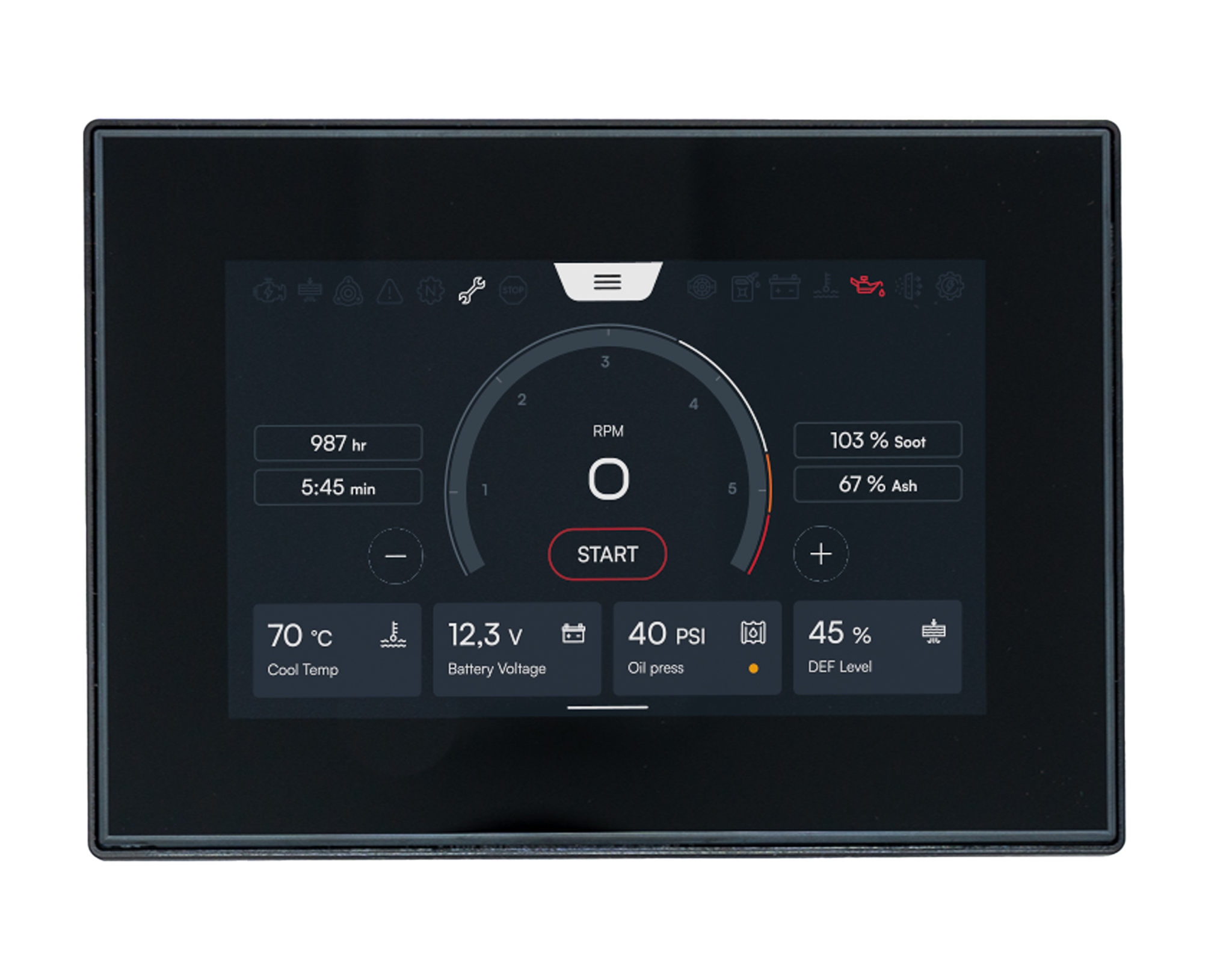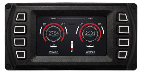 Sunlight viewable engine display with glove-friendly touch and soft keys. 7-inch color display featuring rich color graphics. Powerful processor for smooth animations and video playback. 10 tactile configurable soft keys with white LED backlight. Bonded glare-free LCD screen for superior visibility in sunlight.
