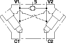 Line mount manifold for counterbalance valves and pilot operated check valves. Double cavity inline body with crosspilot and shuttle (brakeport).