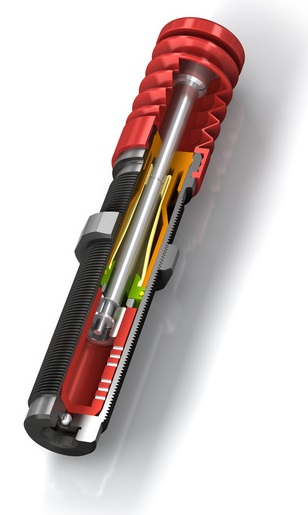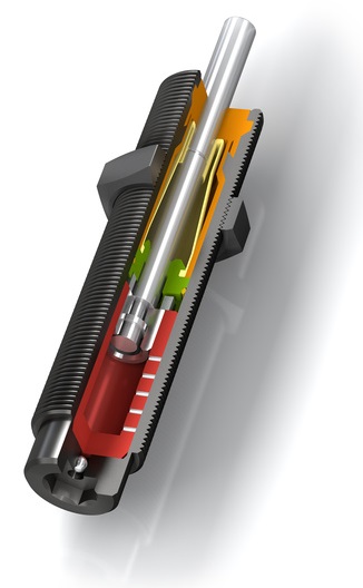 Självkompenserande, piston tube technology, speciellt utvecklat kolvrör för maximalt energiupptag.