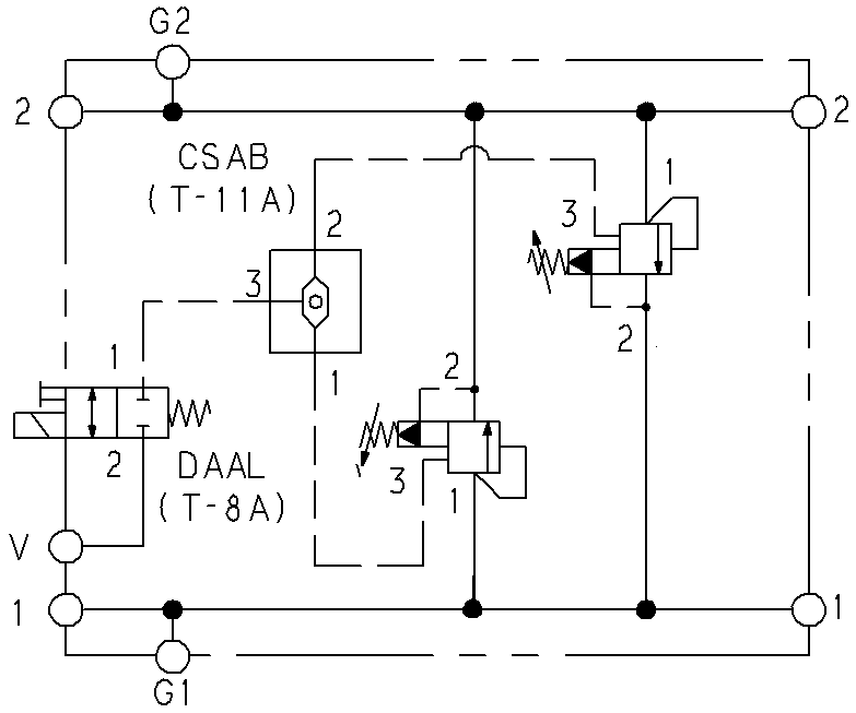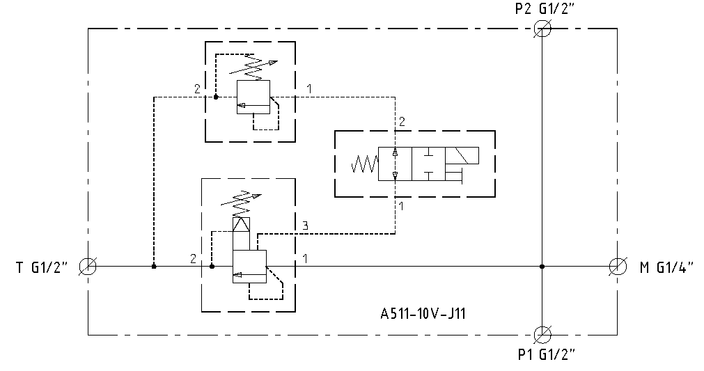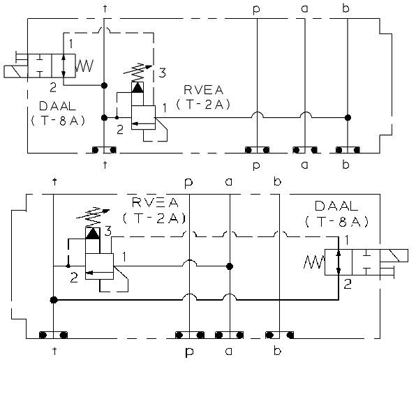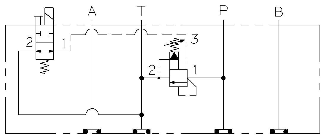 Elavlastad tryckbegränsare A till T eller B till T, sandwichmonterat.