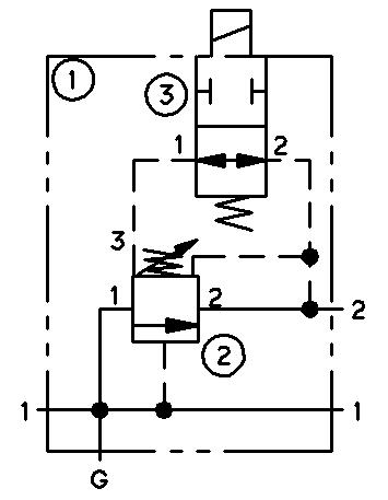 SUN Hydraulic har fyra elstyrda tryckbegränsningsventil har denna funktion i samma ventil.